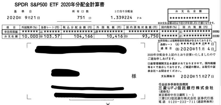 冬は分配金の季節!1557 SPDR S&P500 ETF から不労所得をもらいました