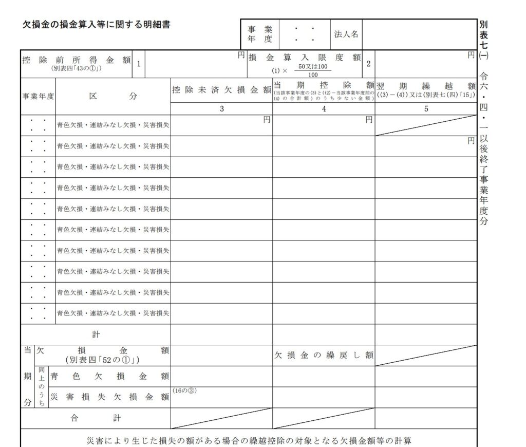 繰越欠損金とは、法人が前年度の赤字を次年度に持ち越せるもので、10年間まで繰越が認められています。法人の決算ではそれを「別表七(一)」という書類に記入して出さないといけません。これは国税向け。けれどもそれをやっていませんでした。