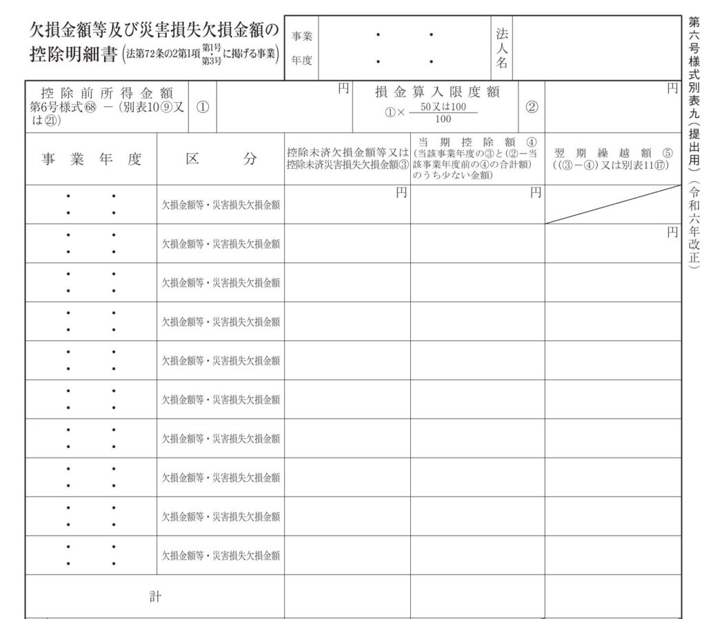 あと、地方税向けには「第6号様式別表9」というのも作る必要があるみたいです。これにも繰越欠損金は記入できていませんでした。