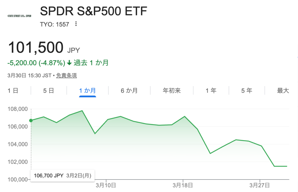 上図は円建てS&P500 ETFの1か月チャートです。見ての通りあまり元気がなく、ズルズルと下がってきています。これを見るだけで、自分の資産が減っているのがわかるので、良い気分ではありません。