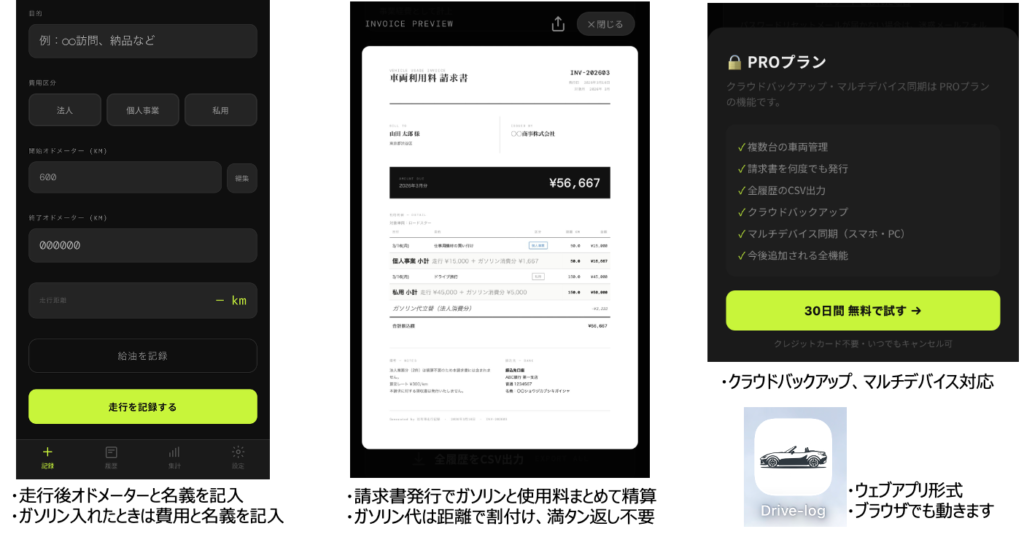 今回導入する社有車は私的にも使用する場合があります。そういう時は、その使用分は業務使用から差し引くような処理が必要です。それに向けてどうやって使用状況やガソリン代を管理しようか悩んだ結果、自分でアプリを作ることにしました(笑)