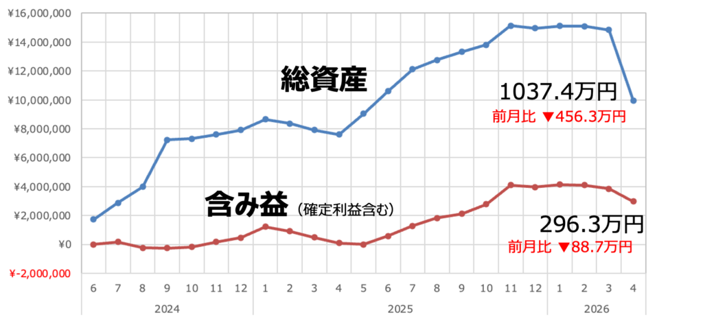 全力投資で退職後に株下落を食らうとこうなる【2026年4月資産推移】