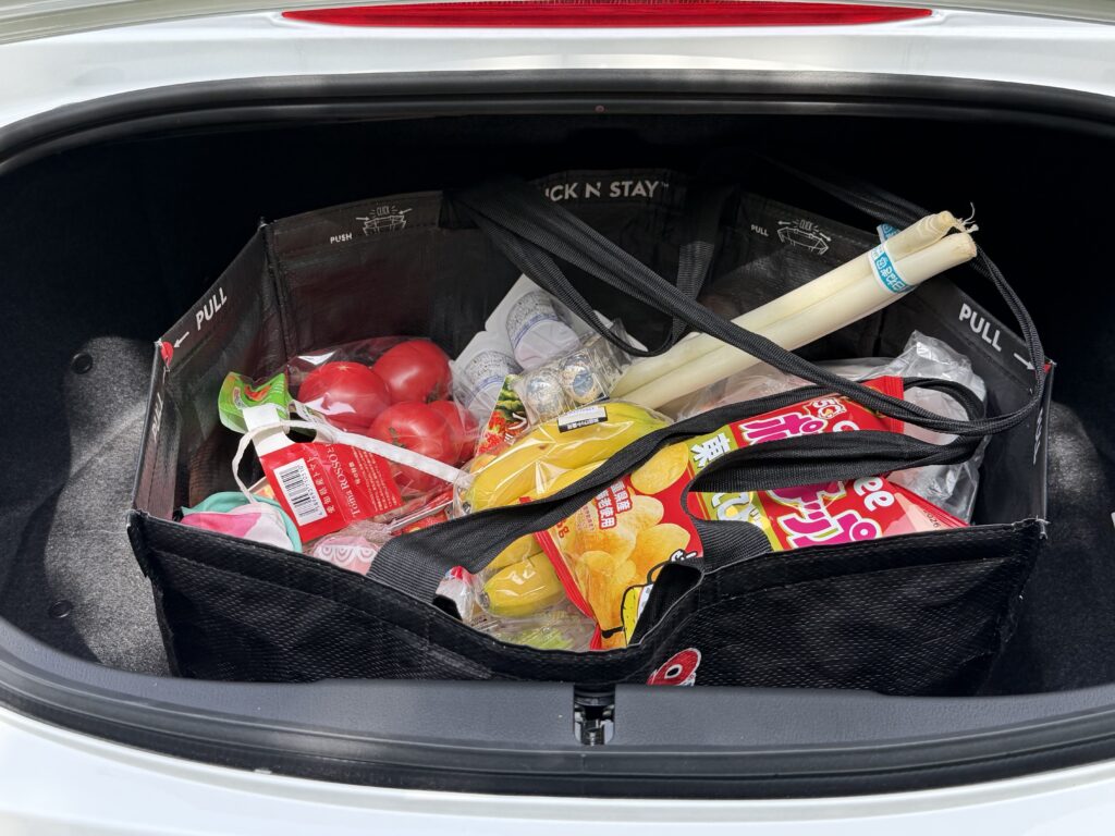 そんな中で、納車前から試してみたかったことがあります。それは「ロードスターでスーパーの買い出しはできるのか?」です。このクルマに興味を持っている方は、どれくらい荷物が載るのか?日常使いできるのか?にも関心があることでしょう。私も実際どうなんだろう?って思ってました。