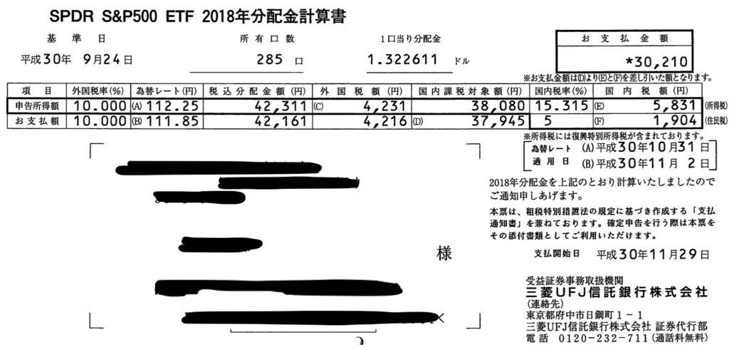 そうすると、後になって色々税金で損していることに気づいてきます。今回は僕がメインで購入してきた銘柄1557 SPDR S&P500 ETFの外国税控除についての話です。ちょっとマニアック。