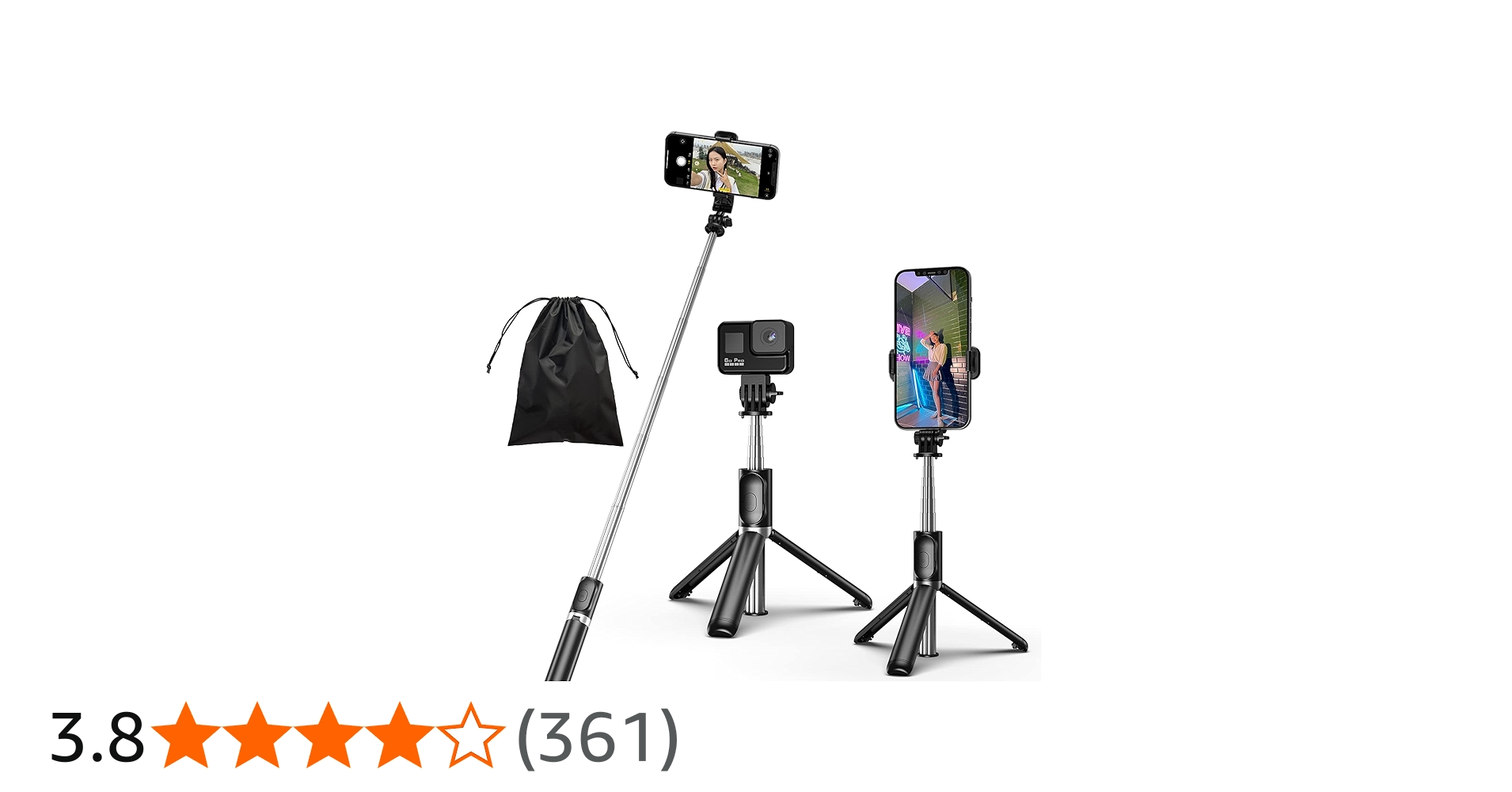 Eono(イオーノ) - 自撮り棒 軽量 三脚ミニ/一脚兼用 リモコン付き ビデオカメラ 7段階伸縮 遠隔操作可能 360回転 収納袋付き 無線 折りたたみ セルカ棒 持ち運び便利 iPhone/Android スマホ対応(ブラック)